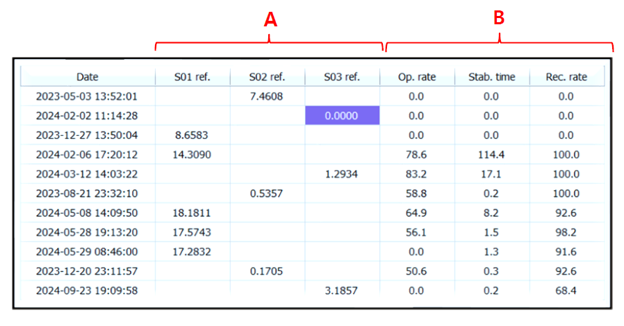 - When the reference point is changed, relative difference values with the remaining points are displayed